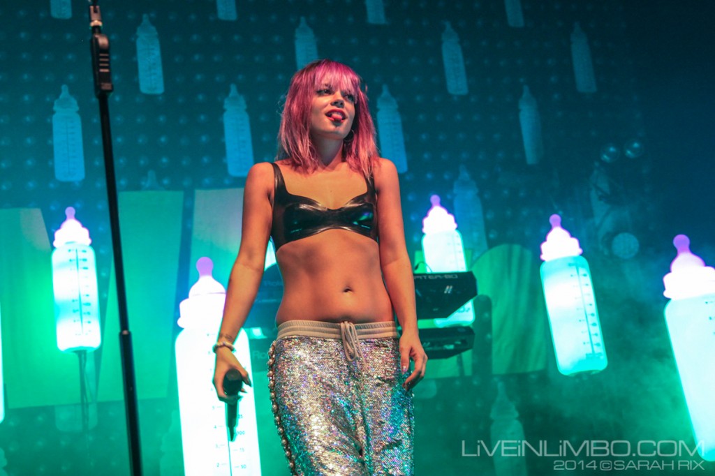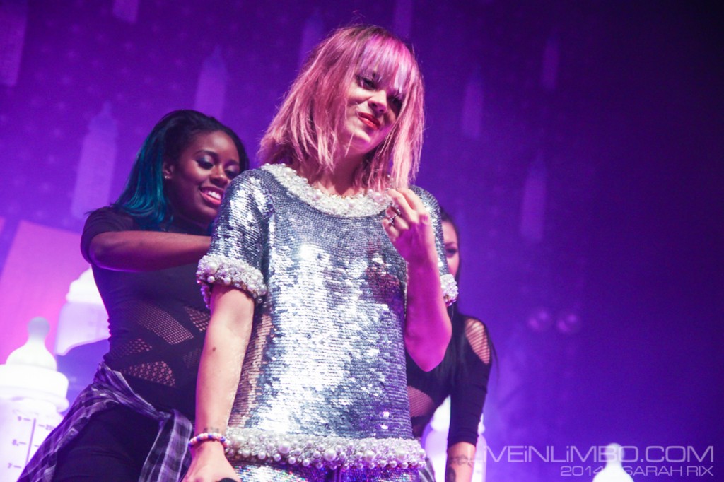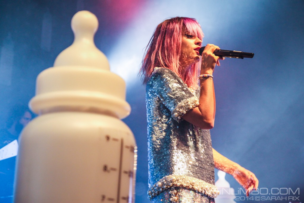 As an artist, Allen’s no doubt benefited from “weirdness” catching on. Her songs have always been just left of standard pop and her attitude was always slightly more outlandish and outspoken than those of her contemporaries. That’s why it was a little disheartening to see how obvious her Sunday night set was. She can decorate her stage in light-up baby bottles all she wants (19 of them, to be exact), but Allen needs to do more. I think she’s capable of pushing the envelope and carrying that audience with her, but it’ll take more than blatant electronics and Yeezus references. I’m still waiting for Allen to realize that as a pop star we’re waiting for her to set trends – not just follow them.